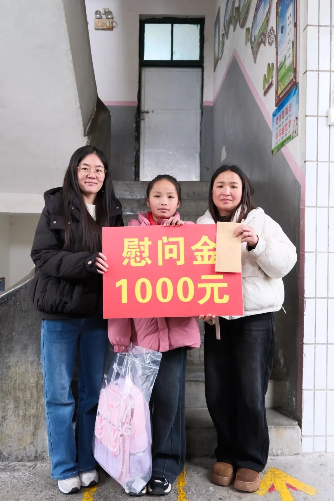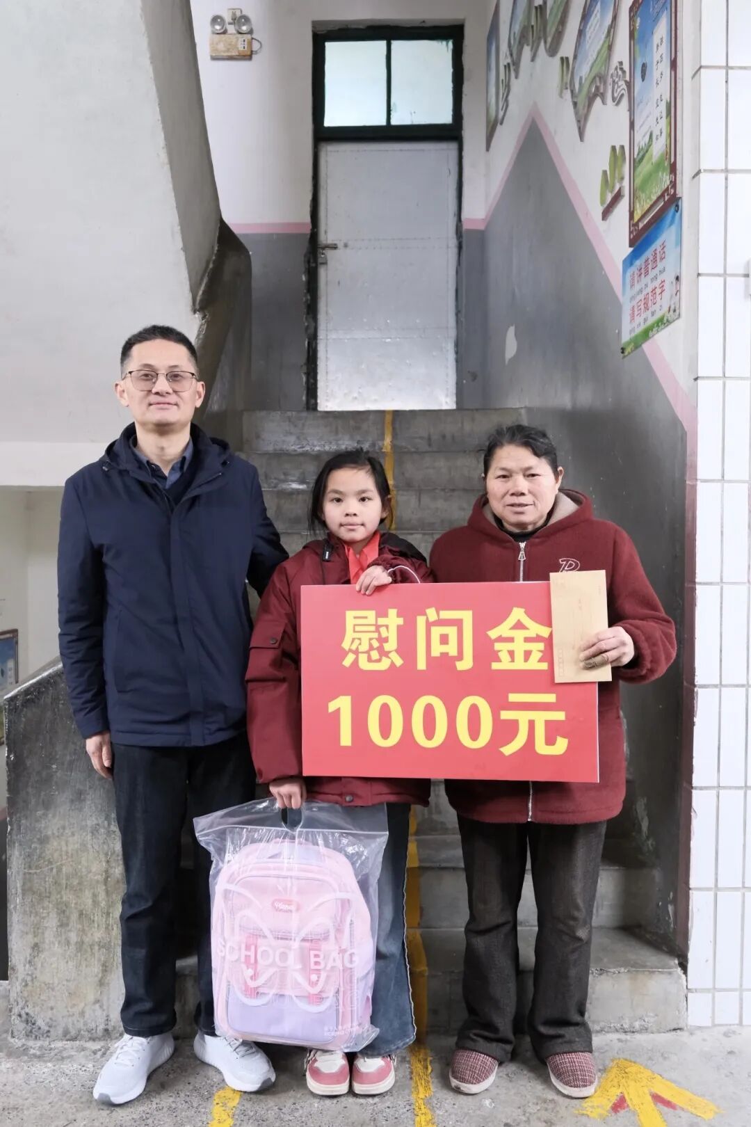 活动中,我院向周覃小学捐赠了图书、文具、体育设施等物资。同时,我院还走访慰问了学校部分困难学生家庭,为孩子们送去慰问金与学习用品,将关怀与温暖送到孩子和家长的心上。孩子们接过崭新的学习用品时,脸上绽放的幸福笑容,成为这个冬日里最动人的风景,让远方的关爱化作缕缕暖意,驱散冬日寒意。