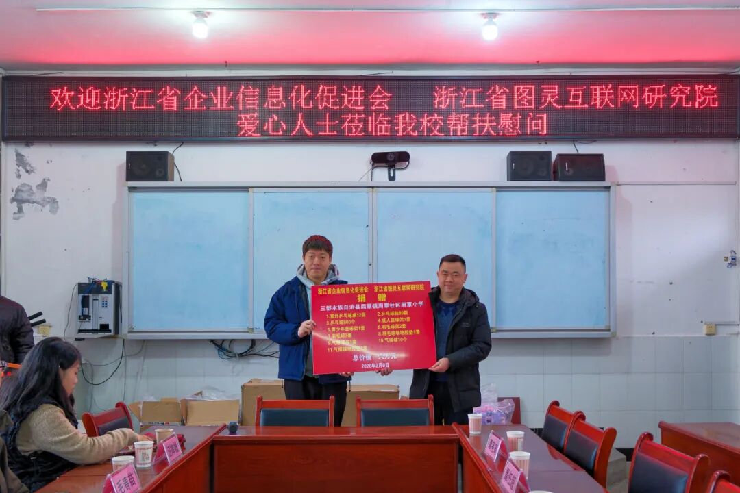 2026-02-10 11:08:492026年2月9日,立春伊始,万物复苏。浙江省图灵互联网研究院走进黔南州三都水族自治县周覃镇周覃小学,开展帮扶慰问座谈会暨公益捐赠活动,以实际行动为乡村教育添温助力,让浙黔同心的暖意漫润校园。
