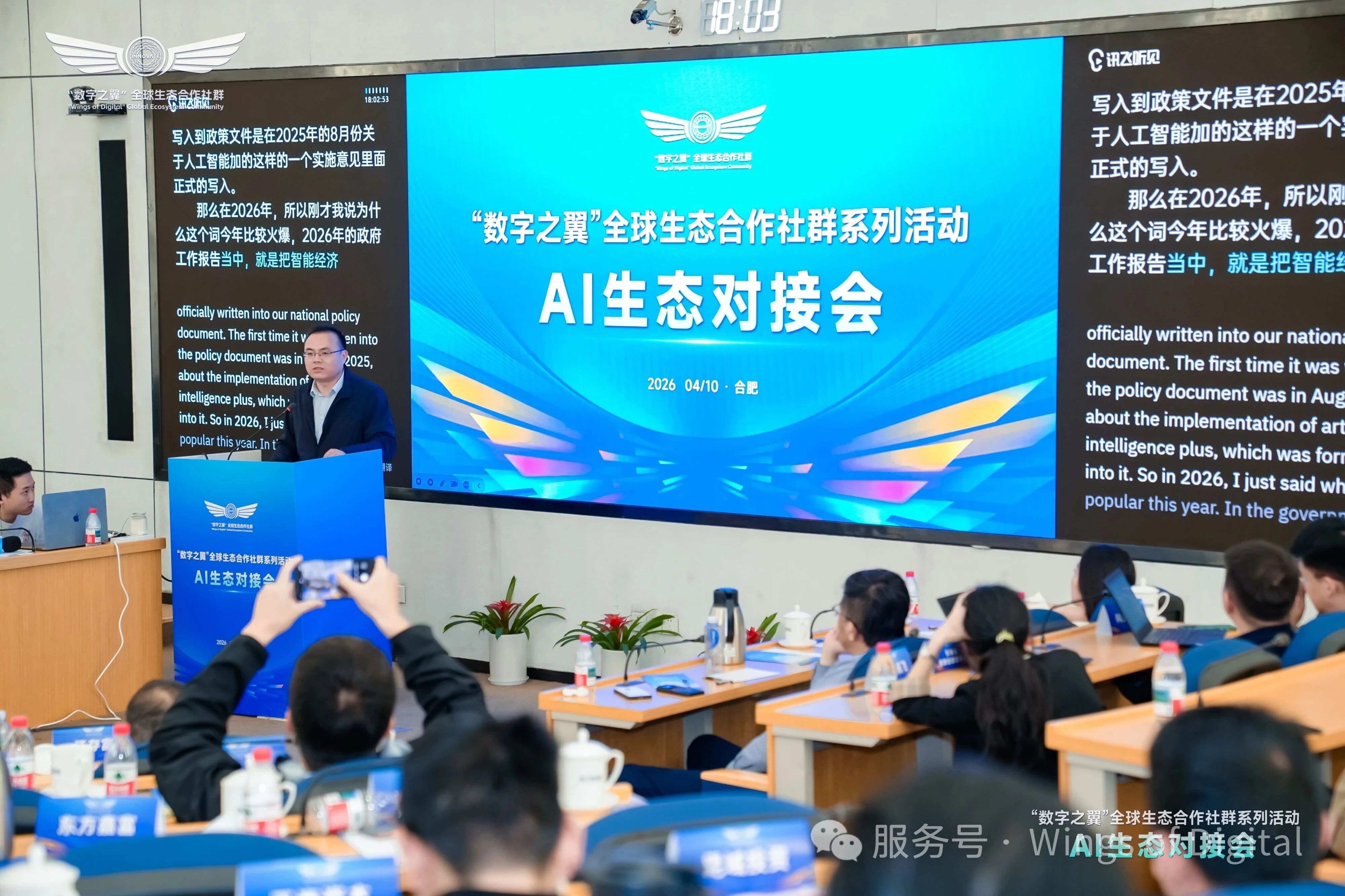 2026-04-13 16:08:064月10日,“数字之翼”全球生态合作社群AI生态对接会在安徽合肥举办。浙江省委网信办、浙江省经济和信息化厅、安徽省工业和信息化厅等单位有关负责人出席活动。科大讯飞、美的集团、新奥能源等龙头企业代表,本源量子、容知日新等直通乌镇全球互联网大赛历届获奖项目代表以及中网投、安徽国控资本、合肥产投资本、普华资本等投资机构代表近百人参会。